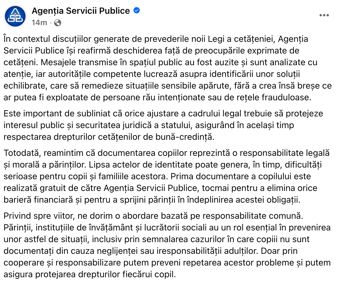 Agenția Servicii Publice (ASP) a venit, de asemenea, cu clarificări după discuțiile apărute în spațiul public privind cazul tânărului care a fost încorporat în armată fără a avea buletin de identitate și care ulterior a ajuns să fie considerat apatrid.