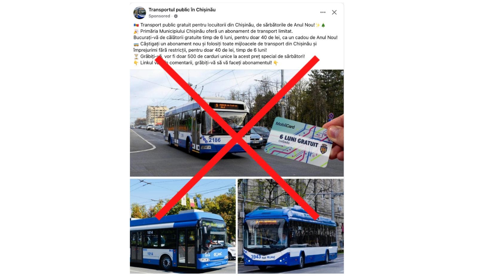 Î.M. Regia Transport Electric Chișinău avertizează cetățenii că informațiile apărute recent pe rețelele sociale privind presupuse „abonamente gratuite pentru 6 luni” la transportul public sunt false.