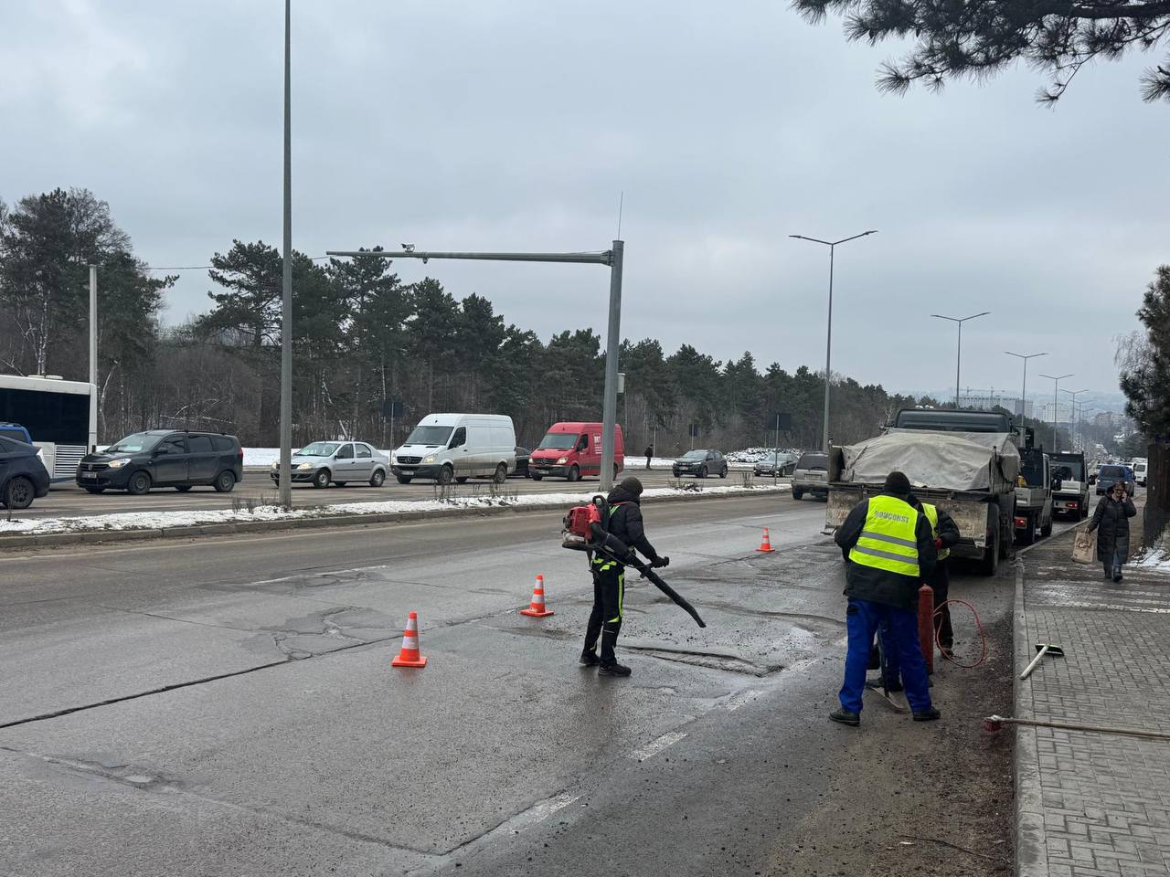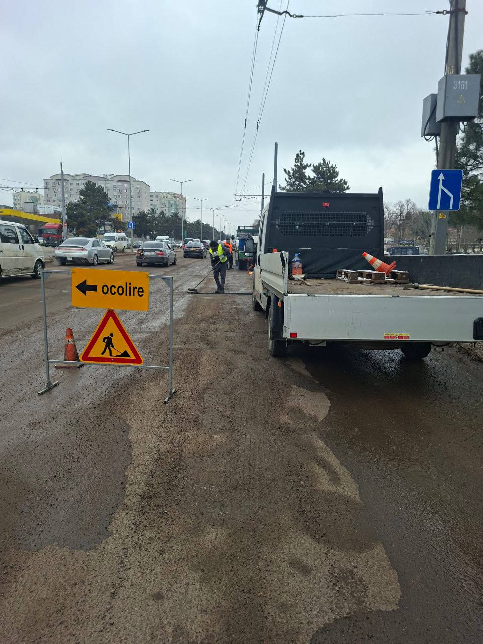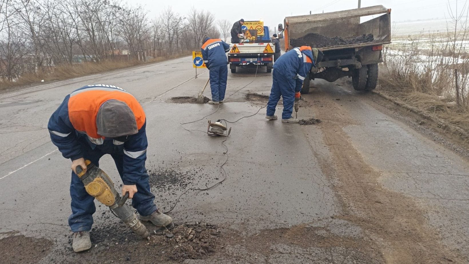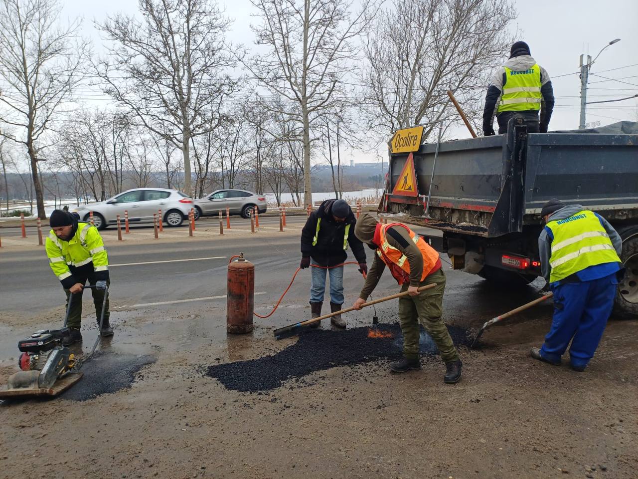 Pe parcursul zilei și până seara târziu sunt efectuate intervenții cu asfalt rece, o soluție temporară recomandată pentru perioada rece a anului, menită să reducă riscul accidentelor și degradarea suplimentară a carosabilului.