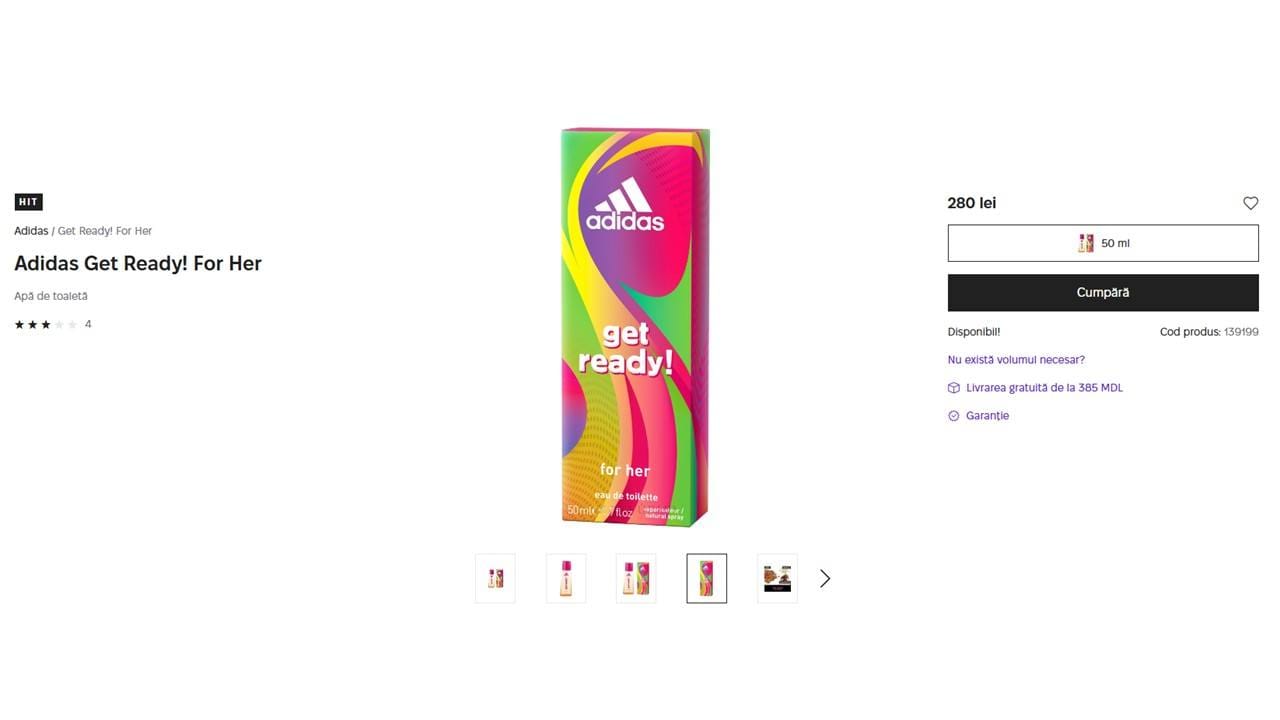 Centrul Național pentru Protecția Consumatorilor (CNPC) anunță că, prin sistemul european de alertă Safety Gate, a fost semnalat un risc chimic major pentru produsul „Get Ready!” (body fragrance pentru femei), marca Adidas, în volum de 75 ml, cu capac roșu din plastic.