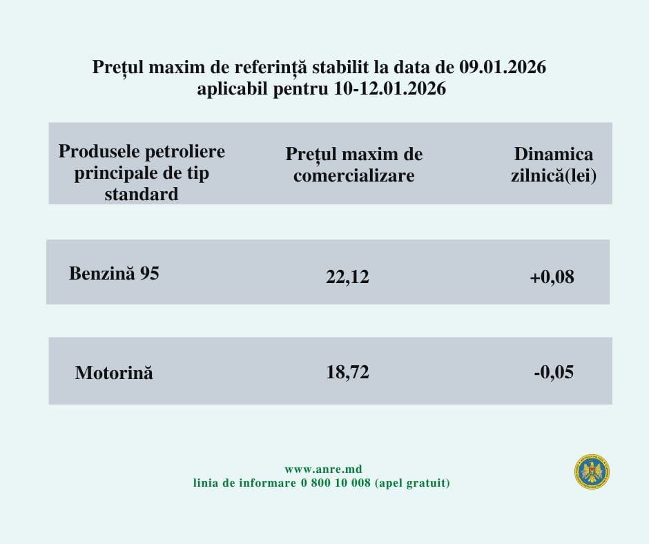 Valorile reprezintă prețurile maxime de comercializare stabilite de Agenția Națională pentru Reglementare în Energetică și sunt aplicabile pentru perioada 10-12 ianuarie.