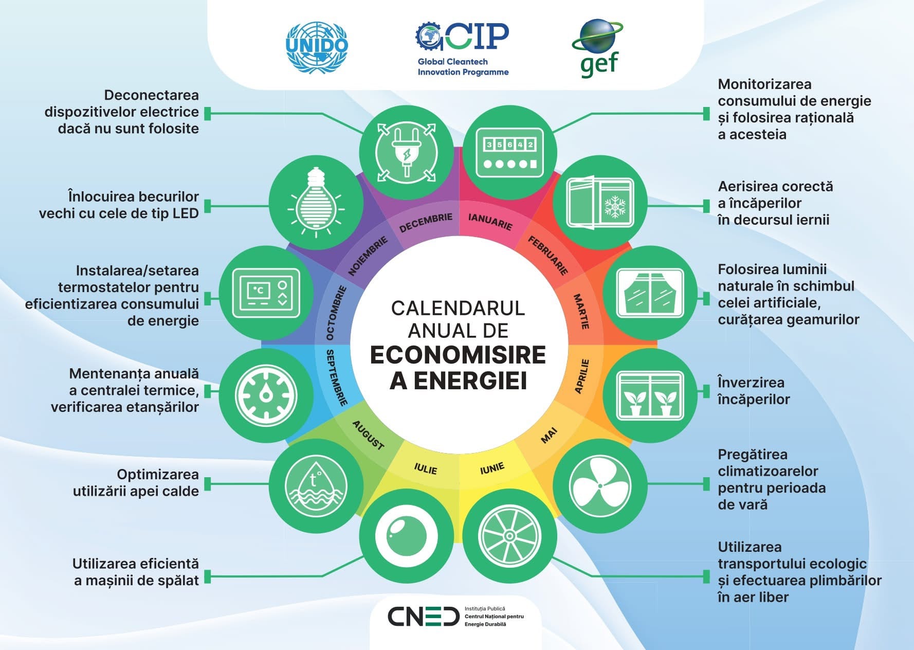 Pentru a sprijini populația în adoptarea acestor măsuri, Ministerul Energiei a lansat un Calendar anual de economisire a energiei, care conține sfaturi practice și idei pentru case, birouri și instituții.