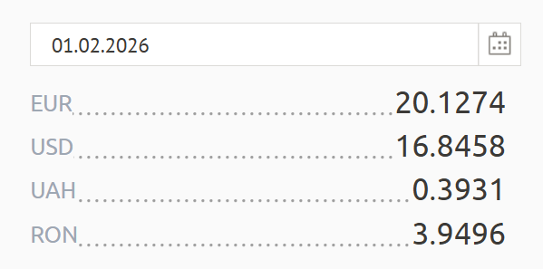 Leul românesc se menține la 3 lei și 94 de bani, iar hrivna ucraineană - la 39 de bani.