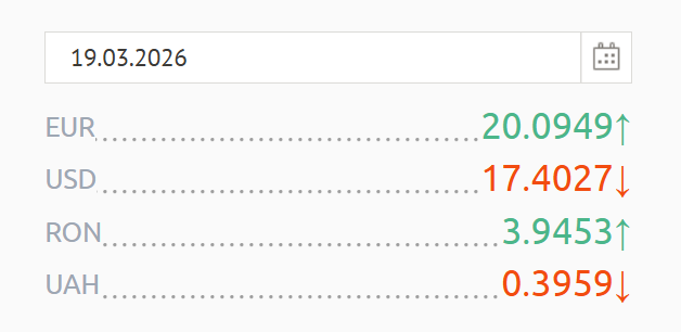 Leul moldovenesc continuă să piardă teren în fața euro, însă se întărește în raport cu dolarul american, arată datele Băncii Naționale a Moldovei (BNM).