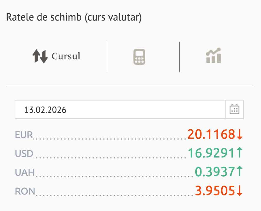 Pentru ziua de 13 februarie, Banca Națională a Moldovei (BNM) a stabilit noi cursuri oficiale de schimb valutar. Variațiile sunt minore, de doar câțiva bani, însă pot conta pentru cei care fac plăți sau schimburi valutare zilnic.