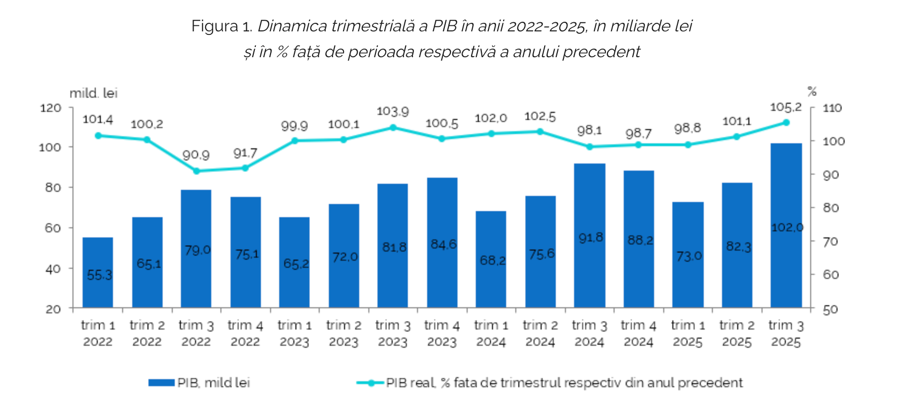 În perioada ianuarie-septembrie 2025, PIB-ul a constituit 257,3 miliarde de lei, la prețuri curente, iar economia a crescut cu 2,0% față de intervalul similar din 2024.