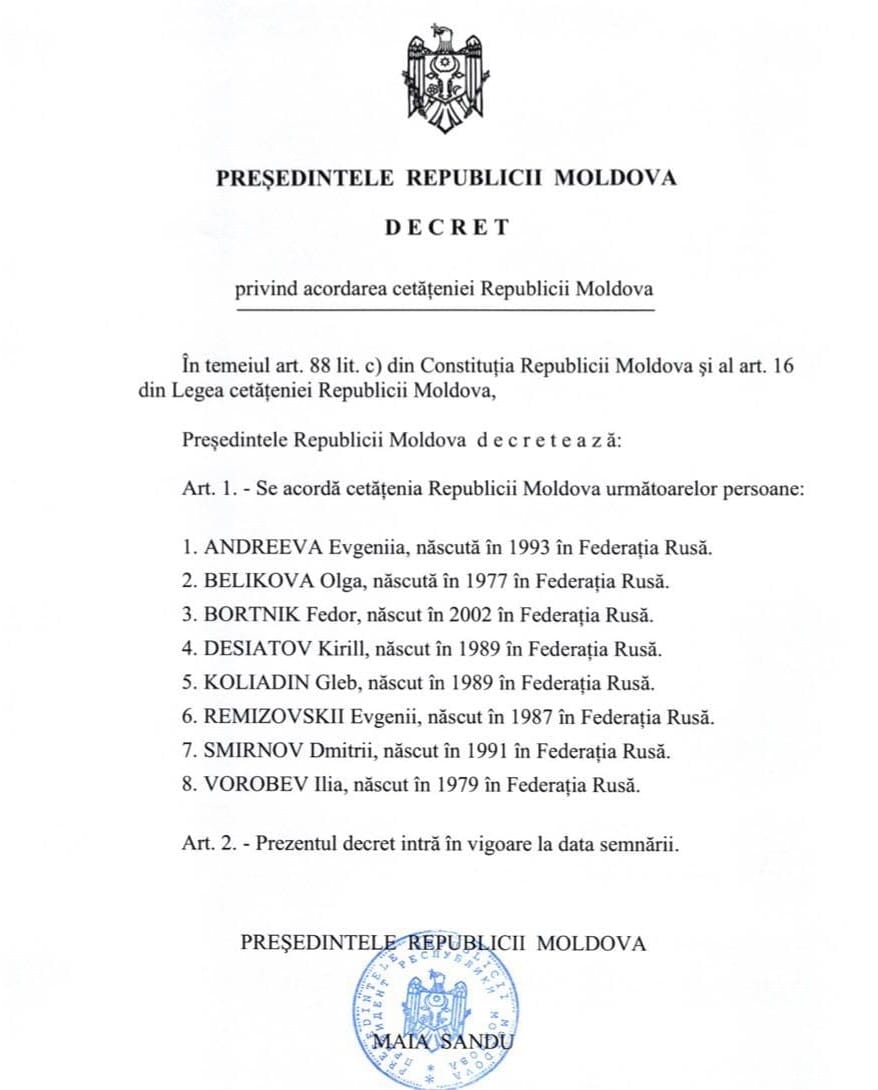 DOC/ Cine sunt cele opt persoane din Rusia cărora Maia Sandu le-a oferit cetățenia moldovenească