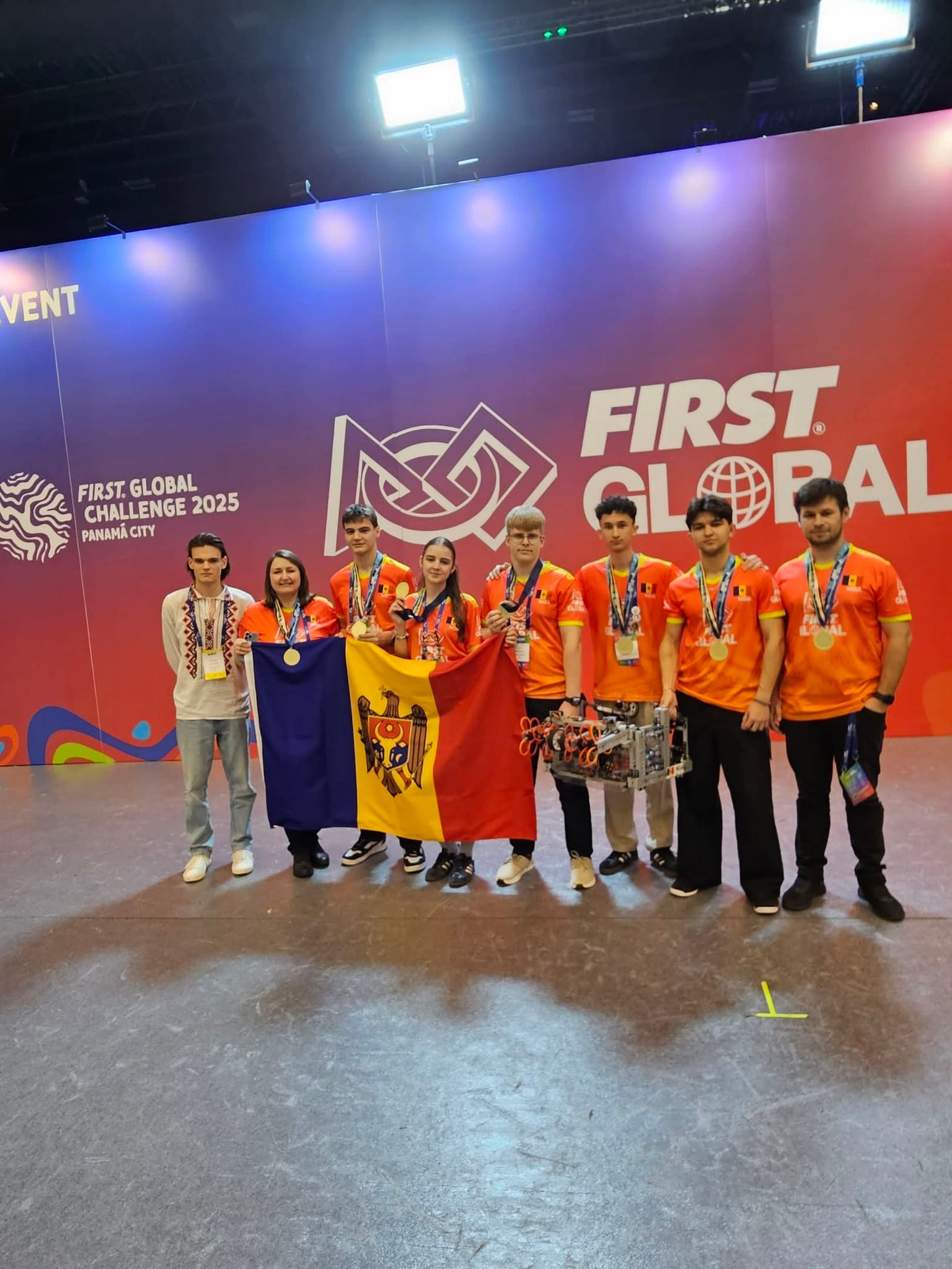 Elevii din R. Moldova au câștigat medalia de aur la cea mai mare Olimpiadă mondială de robotică pentru liceeni – FIRST Global Challenge. Potrivit Ministerului Educației și Cercetării, cea de-a cincea ediție a competiției s-a desfășurat în perioada 28 octombrie - 1 noiembrie în Panama City, Panama și a reunit echipe din peste 190 de țări. Olimpiada este organizată pentru elevii de 15-18 ani.