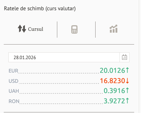 Cursul valutar pentru miercuri, 28 ianuarie, vine cu schimbări mici, dar vizibile față de ziua de ieri, anunță Banca Națională a Moldovei (BNM).