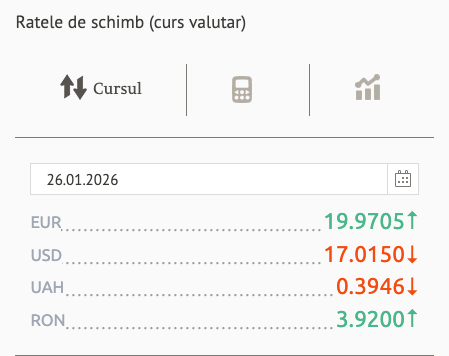 Banca Națională a Moldovei (BNM) a stabilit cotațiile oficiale pentru luni, 26 ianuarie, marcând o evoluție diferită pentru principalele valute față de ziua de weekend.