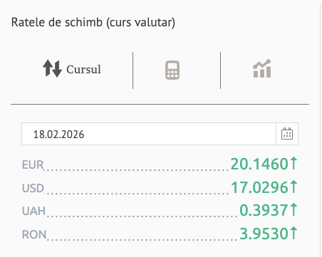 Banca Națională a Moldovei (BNM) a publicat cursul oficial pentru 18 februarie, iar principalele valute înregistrează creșteri ușoare față de ziua precedentă.