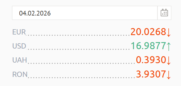 Leul românesc se menține la 3 lei și 93 de bani, iar hrivna ucraineană - la 39 de bani.