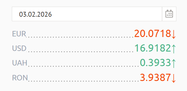 Leul moldovenesc se apreciază în raport cu euro și se depreciază față de dolarul american, arată datele Băncii Naționale a Moldovei (BNM).