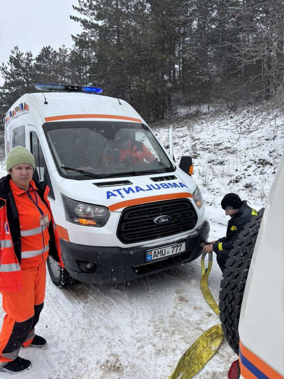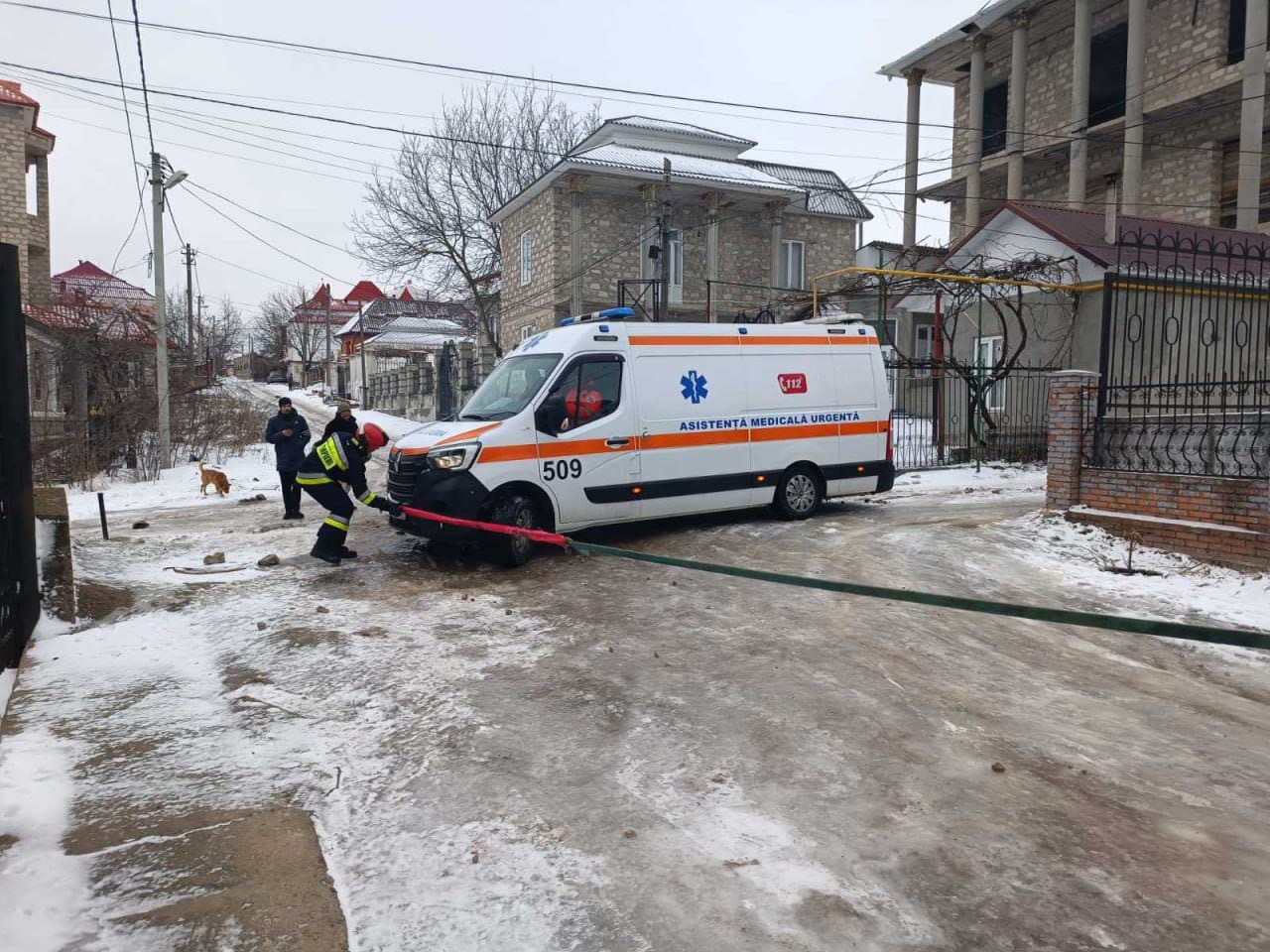 O altă ambulanță a fost deblocată la Soroca. Vehiculul a derapat de pe traseu în timp ce se îndrepta spre solicitare.