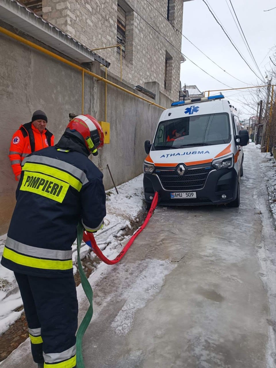 FOTO/ Angajații IGSU, la datorie. Mai multe ambulanțe au fost ajutate să ajungă la pacienți