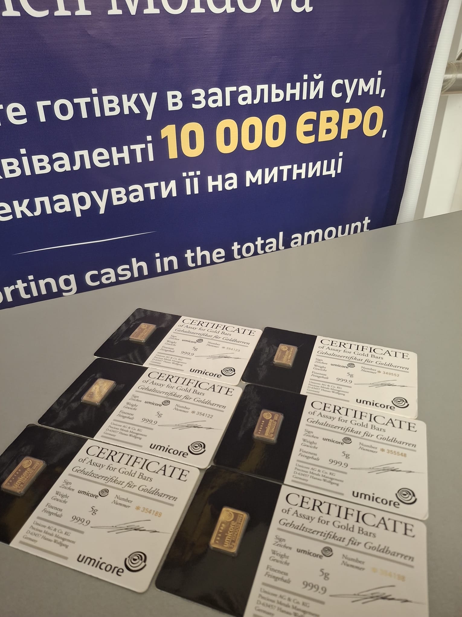 Un alt caz a fost înregistrat la controlul pasagerilor de pe ruta Chișinău-Larnaca. Funcționarii vamali, în cooperare cu polițiștii de frontieră, au depistat în bagajul de mână al unui cetățean ucrainean de 44 de ani șase obiecte metalice de culoare aurie, asemănătoare unor lingouri de aur, care nu au fost declarate conform prevederilor legale.