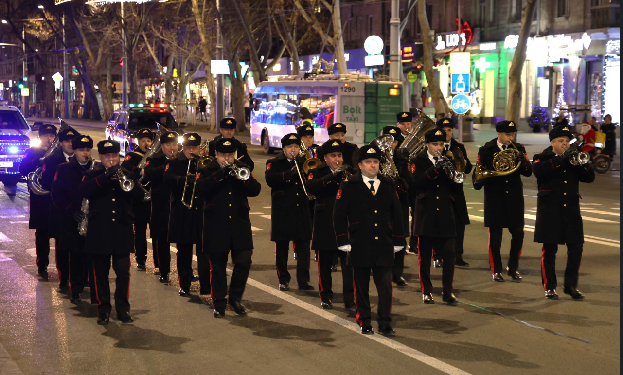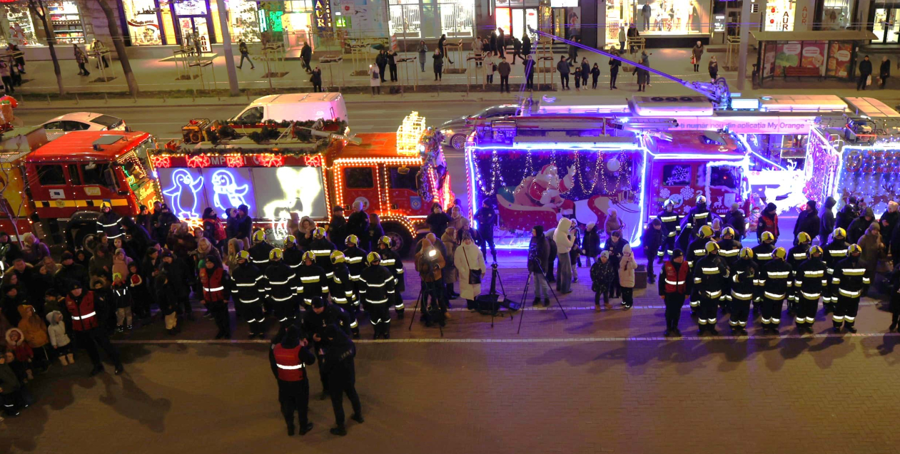 Coloana de autospeciale a ajuns în centrul orașului, unde, în fața Ministerului Afacerilor Interne, a avut loc lansarea oficială a evenimentului. Atmosfera festivă a fost completată de colinde și un program muzical de Crăciun.