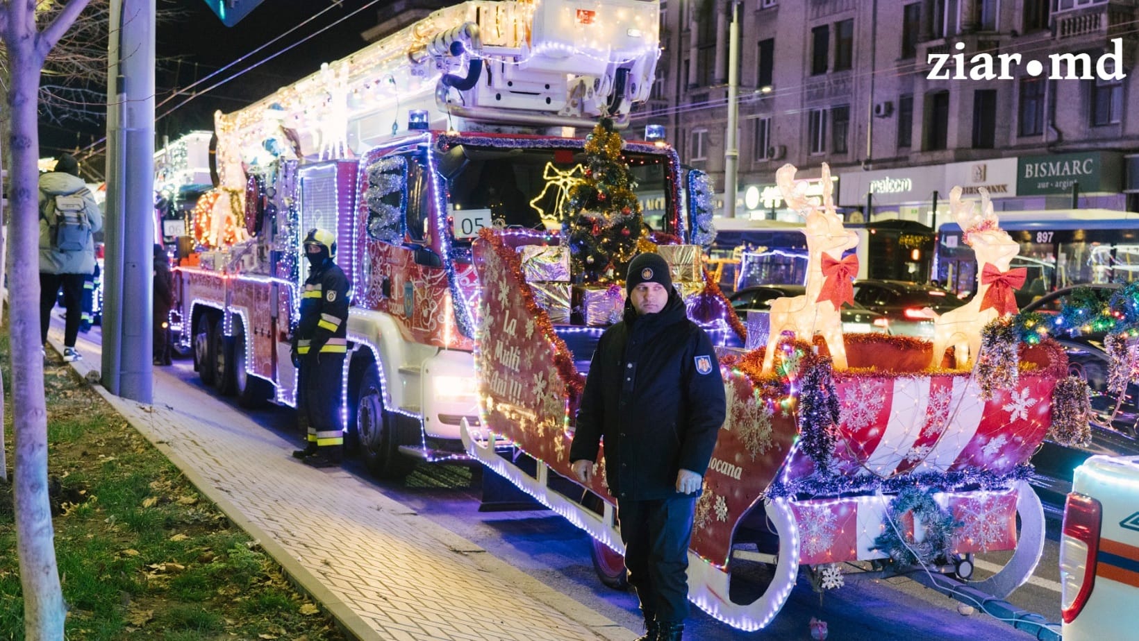 FOTO/ Caravana Salvatorilor și Pompierilor a adus magia sărbătorilor pe străzile Chișinăului
