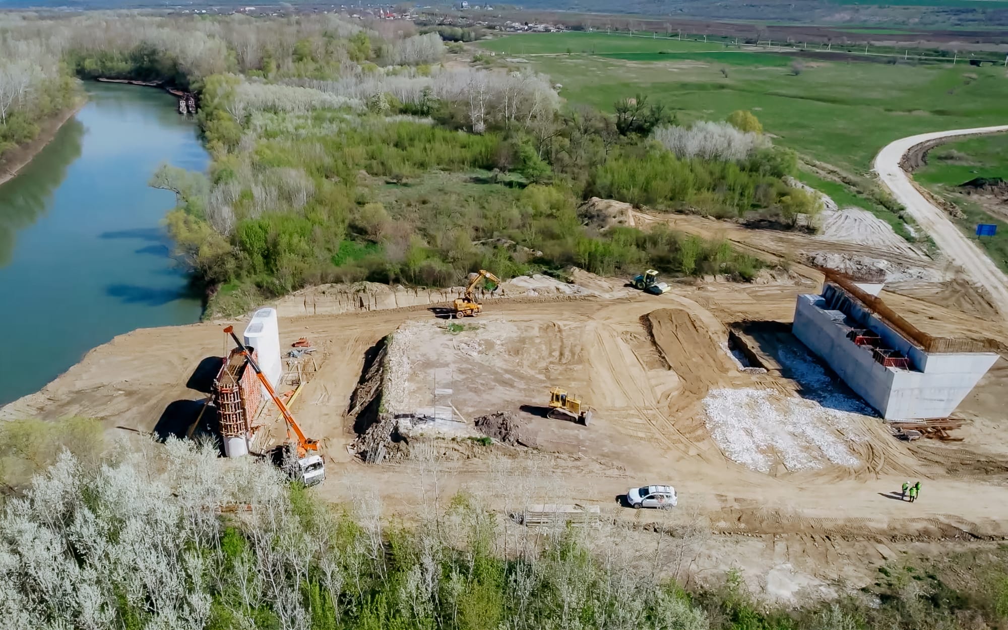 FOTO/ Podul de la Ungheni prinde contur. Lucrările de construcție au ajuns la 45%