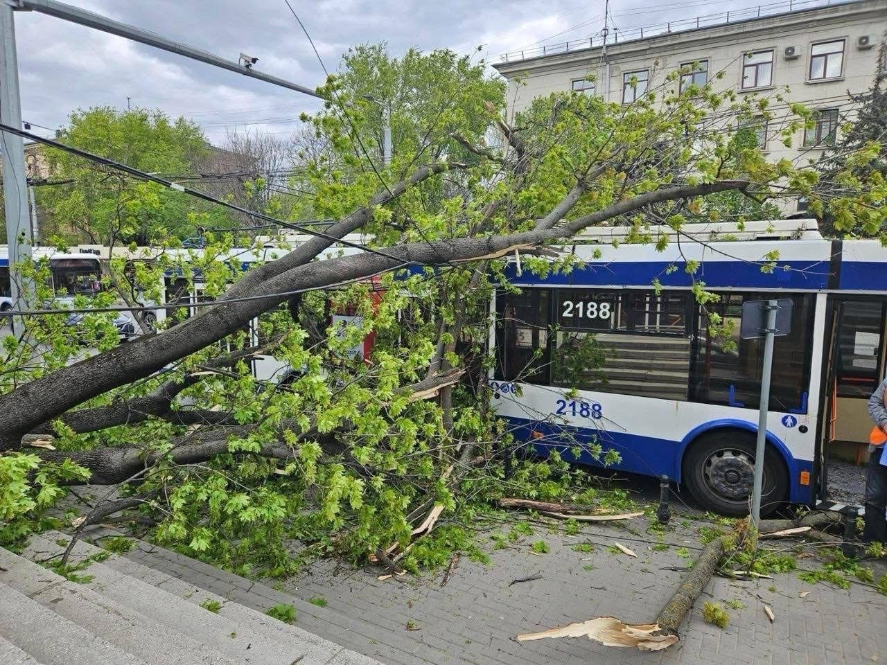 Cele mai multe intervenții au fost raportate în Chișinău, unde vântul puternic a provocat mai multe incidente în diferite sectoare ale capitalei. În sectorul Buiucani, un copac a căzut peste un troleibuz la intersecția bulevardului Ștefan cel Mare și Sfânt cu strada Mihai Viteazul, afectând temporar circulația transportului public.