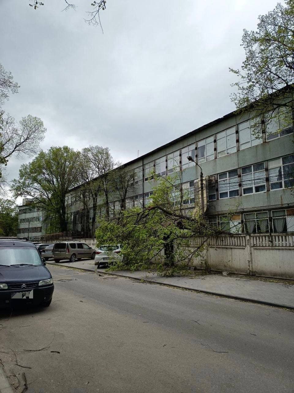 Pe strada Gheorghe Asachi, 47 din capitală un copac a căzut peste firele electrice, iar pe strada Salcâmilor nr.22 din Chișinău vântul a deteriorat acoperișul unui depozit.