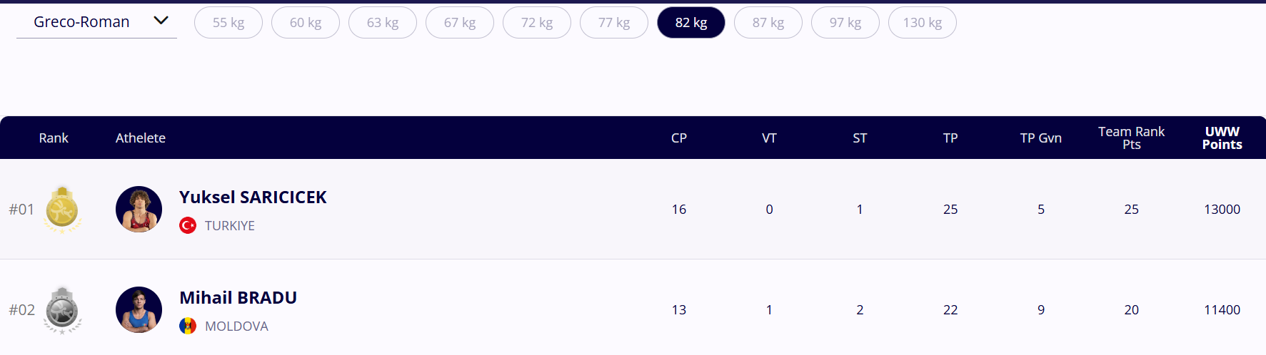 Aceasta este a doua medalie cucerită de luptătorii noștri de stil greco-roman, după medalia de bronz adusă de Vitalie Eriomenco în categoria de până la 63 de kilograme.