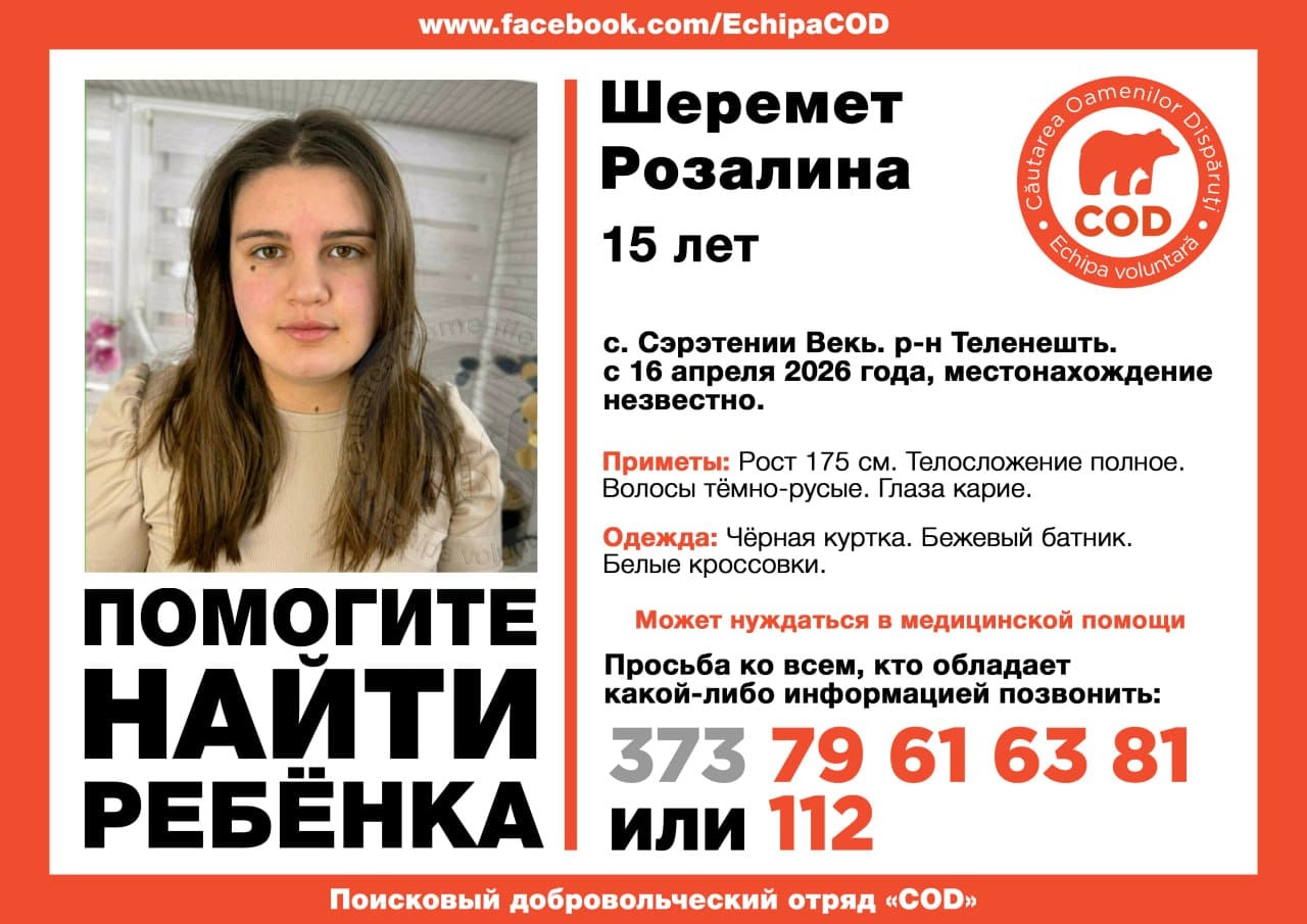 Persoanele care dețin orice fel de informații sunt rugate să contacteze Poliția la 112 sau la numărul 079616381.
