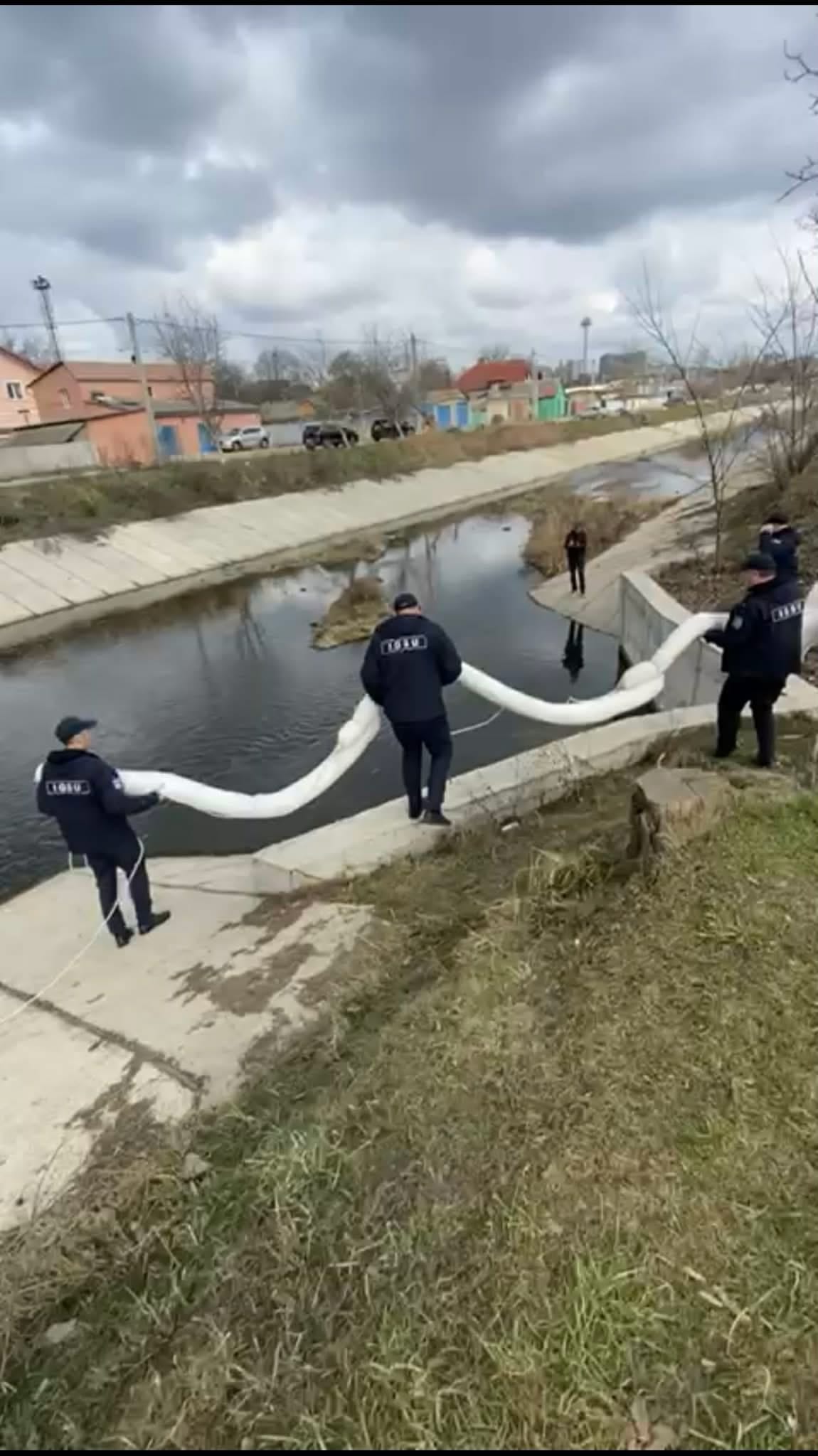 Produsele petroliere au ajuns și pe râul Bîc - specialiștii au instalat baraje absorbante