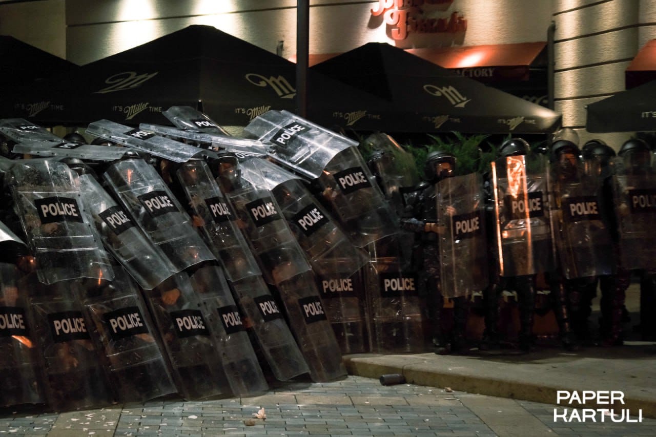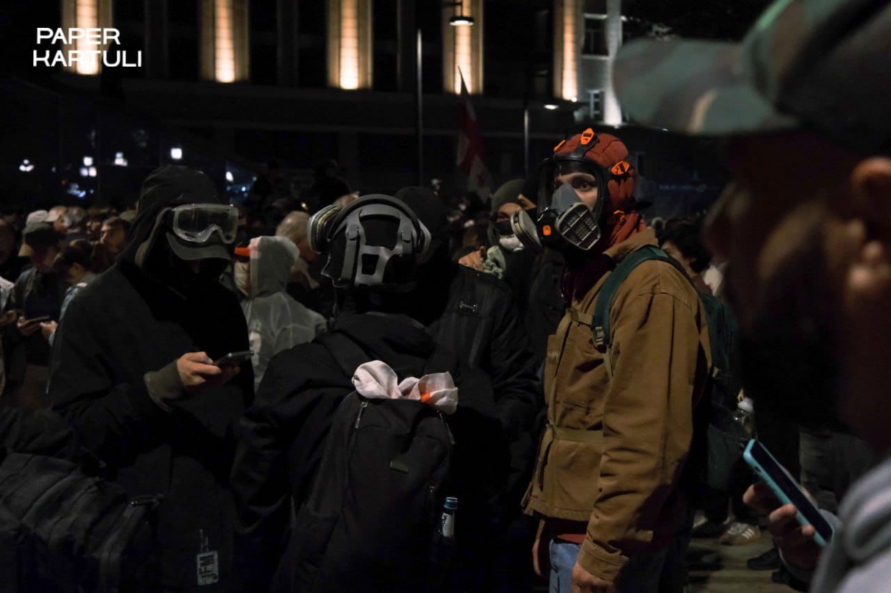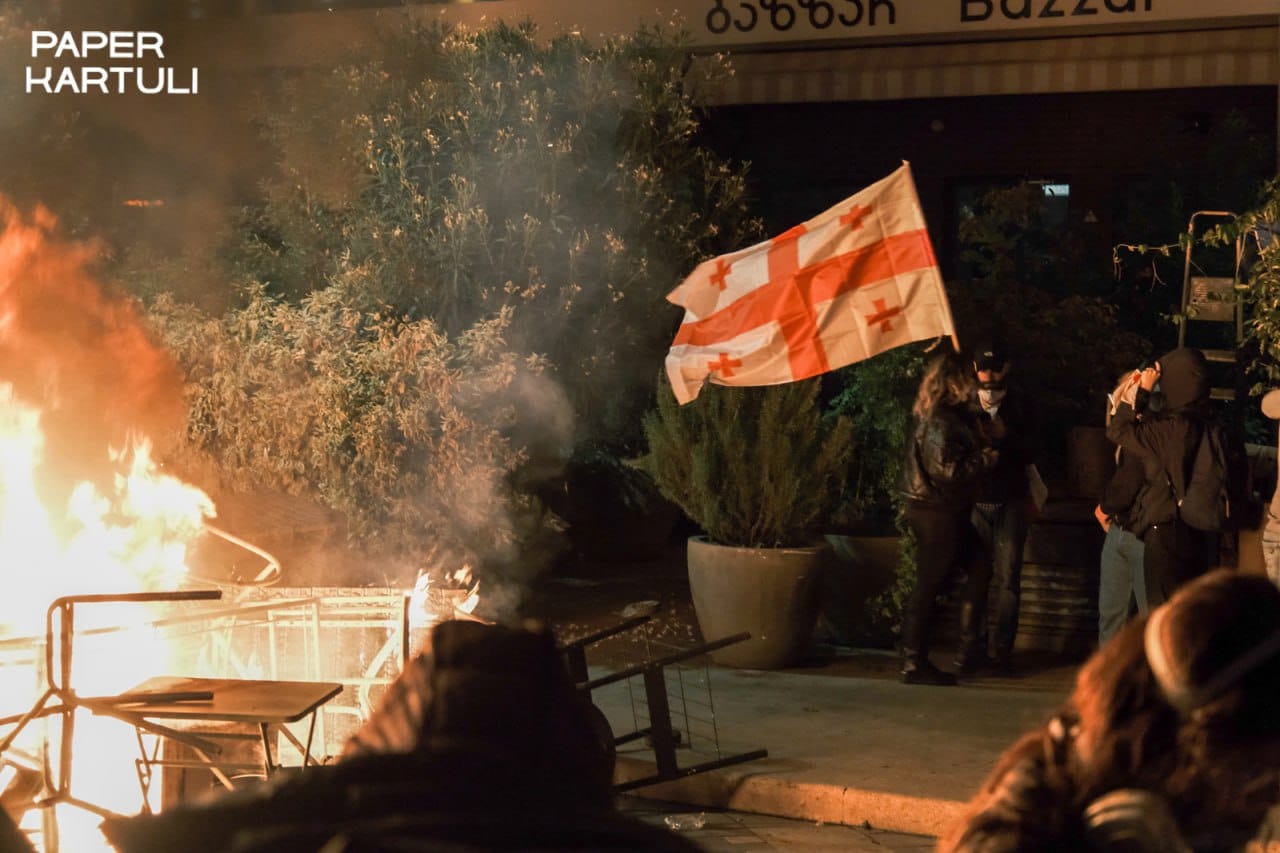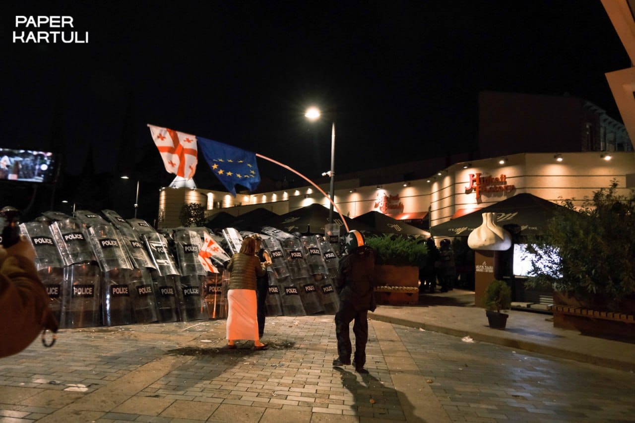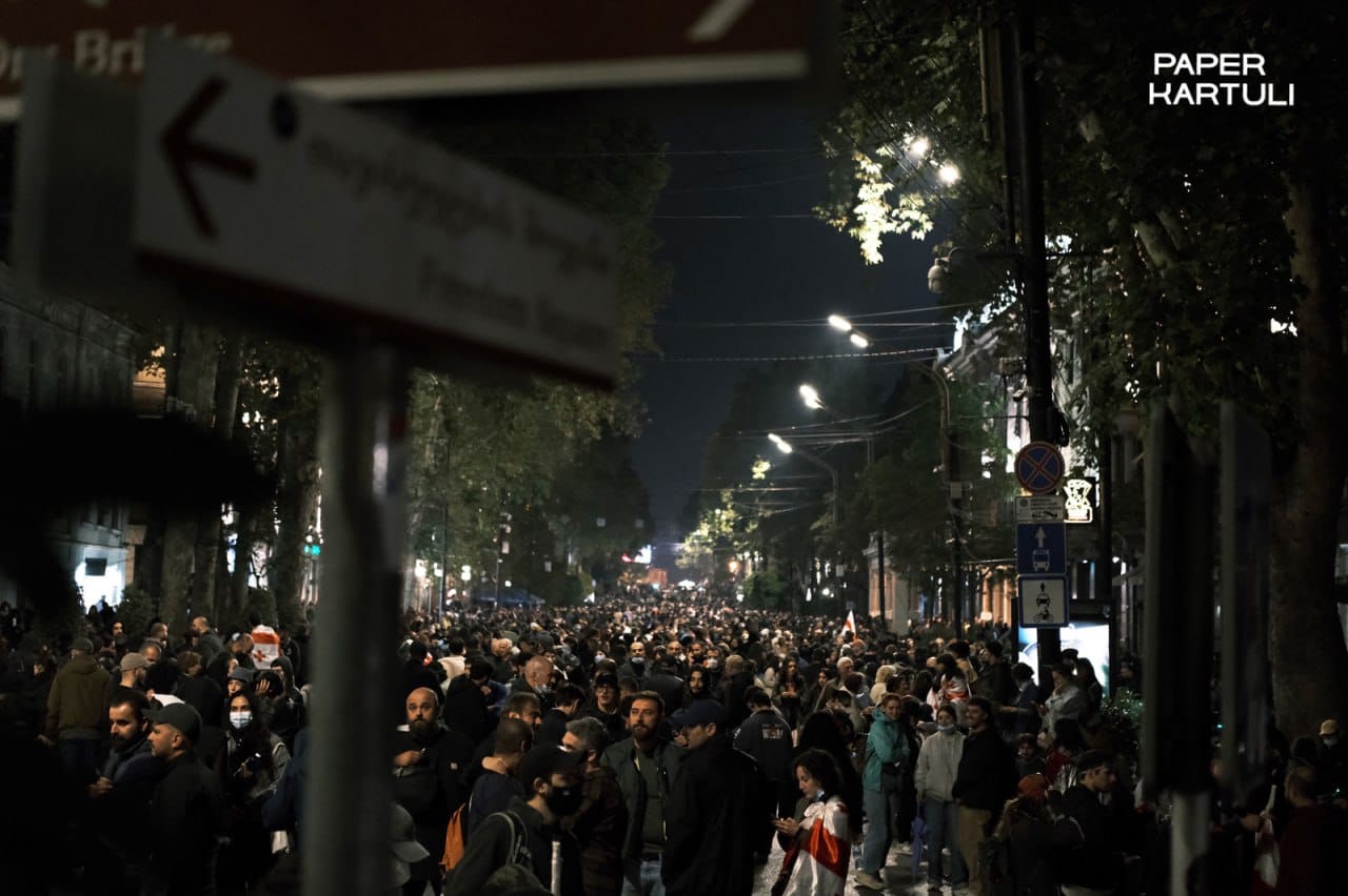La începutul serii, mulțimea de protestatari se afla în centrul orașului Tbilisi, agitând drapele georgiene și ale UE.