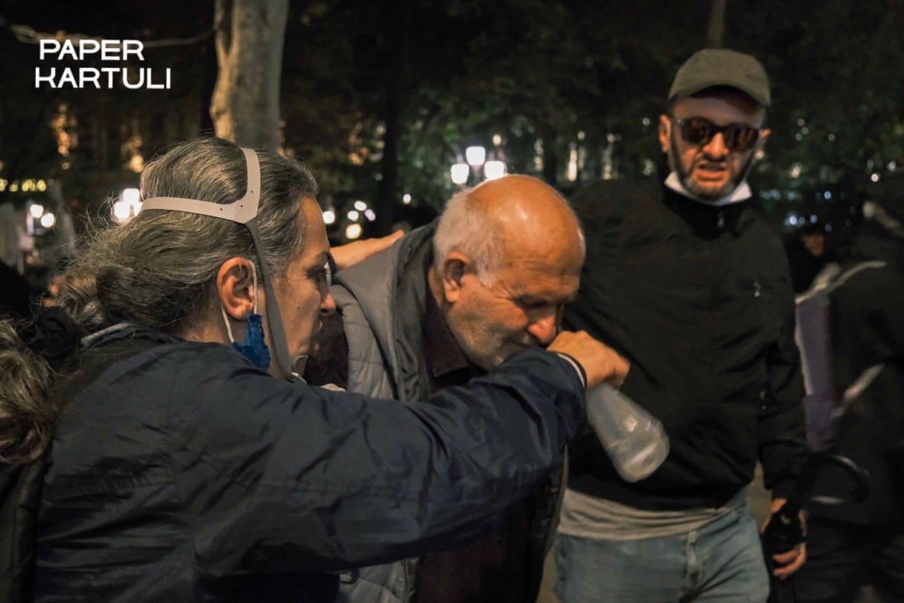 Zeci de mii de manifestanți au protestat sâmbătă seara, 4 octombrie, la Tbilisi, în ziua alegerilor locale. Manifestanții au mărșăluit către palatul prezidențial, unde au încercat să pătrundă în incintă. Forțele de ordine au folosite tunuri cu apă și gaze lacrimogene pentru a dispersa mulțimea, iar premierul Georgiei a anunțat pedepse pentru cei care sunt „complici la tentativa de răsturnare a puterii în stat”, scrie Paper Kartuli.