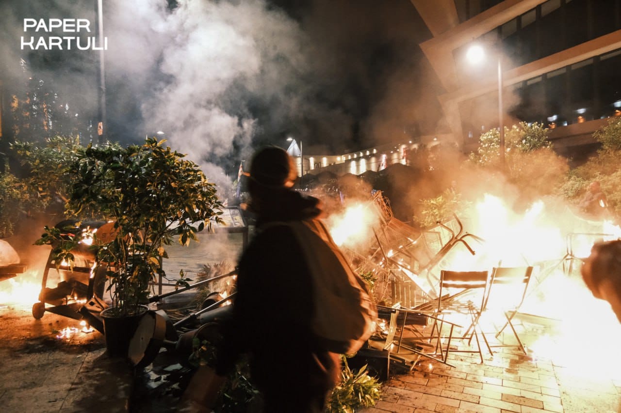 Cu puțin timp înainte de închiderea secțiilor de votare, un grup de manifestanți a încercat să pătrundă în palatul prezidențial din capitala Tbilisi. Protestatarii au dat foc baricadelor din apropierea Pieței Libertății, în timp ce forțele de ordine au intervenit în număr mare în zonă. Poliția a folosit tunuri cu apă și spray lacrimogen pentru a dispersa mulțimea.