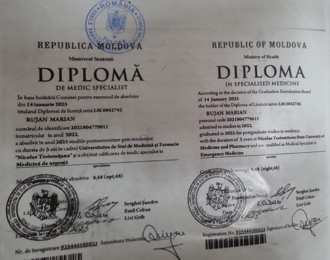 Documentele consultate de G4Media arată că diplomele invocate de procurorii români sunt semnate și de Emil Ceban, care la acel moment era rectorul Universității de Stat de Medicină și Farmacie „Nicolae Testemițanu” din Chișinău.