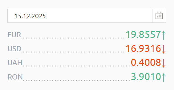 Astăzi, 15 decembrie, leul moldovenesc se apreciază ușor în raport dolarul american, însă pierde teren față de euro, arată datele Băncii Naționale a Moldovei (BNM).