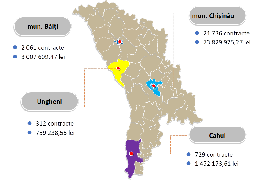 Potrivit datelor prezentate, cele mai mari încasări provin din patru regiuni ale țării, conform topului elaborat de SFS, fiind vorba de municipiul Chișinău, municipiul Bălți, Cahul și Ungheni.