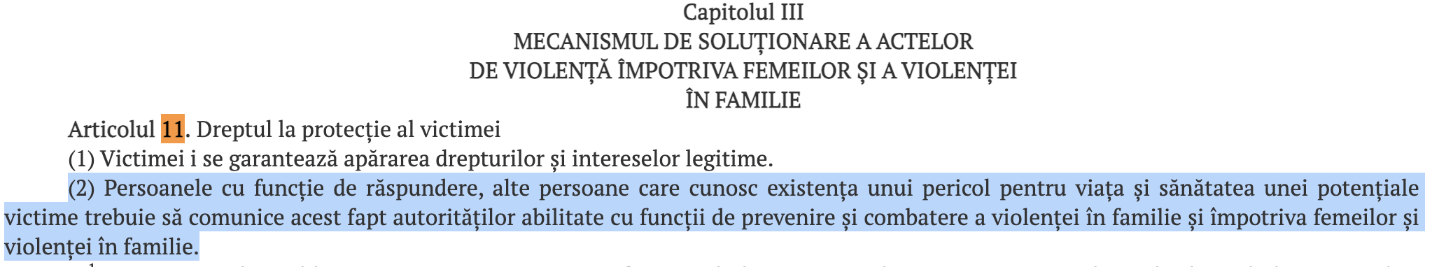 „Articolul 11 alineatul (2) din Legea privind violența în familie instituie obligația persoanelor să denunțe astfel de cazuri. Cu toate acestea, în practică, de cele mai multe ori, astfel de fapte ajung să fie cunoscute de către organele de drept când infracțiunile sunt deja consumate”, a subliniat Rusu.
